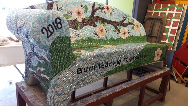 Met het geld dat we dit project oplevert, gaan we verder werken aan een “Social Sofa”. Dat is een grote bank met mozaïek, die gemaakt wordt door vrijwilligers.